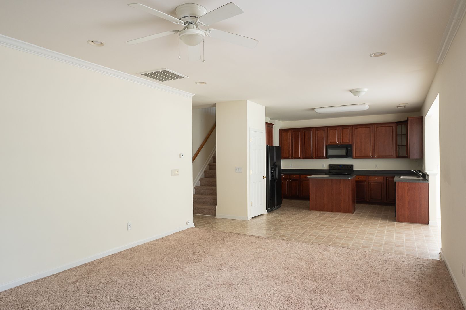 • Open concept kitchen with an island and lots of cabinet space.