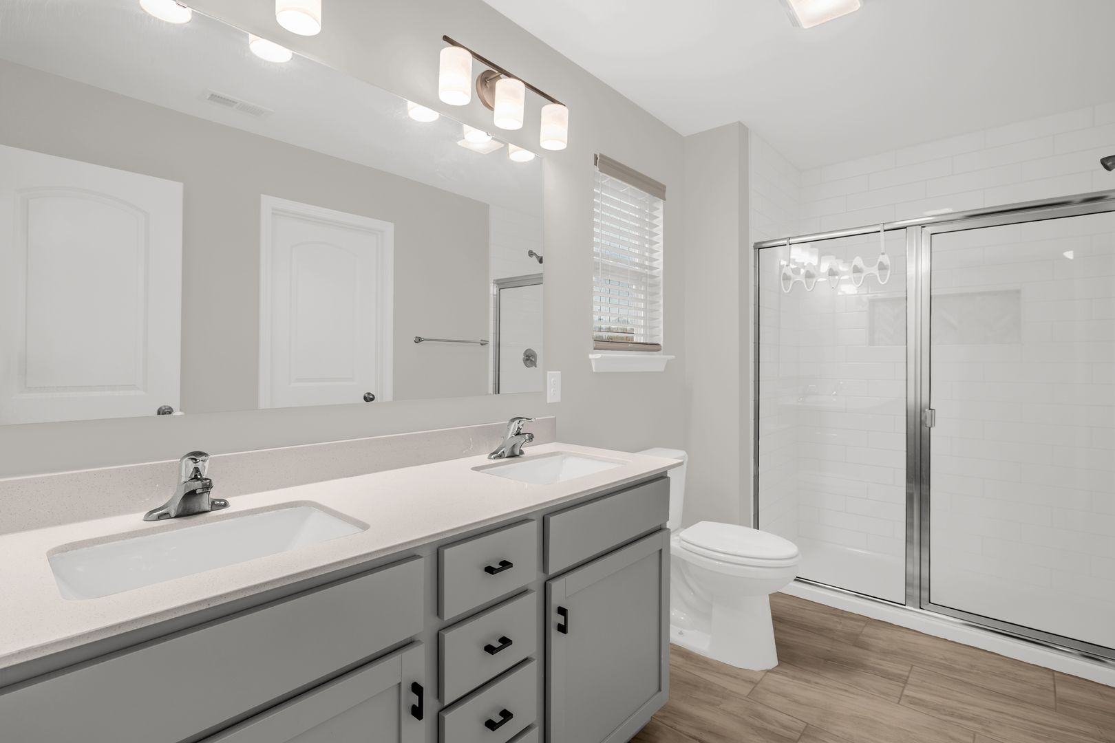 The home features a spacious living area, a modern kitchen with ample cabinet and counter space, and generously sized bedrooms. With three full bathrooms, this layout is ideal for families, roommates, or anyone needing extra space for guests or a home office. Neutral finishes throughout provide a clean, move-in-ready feel.