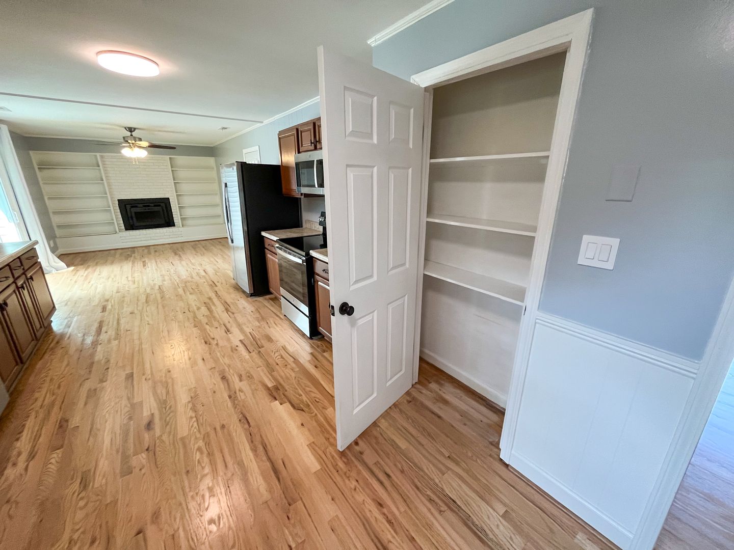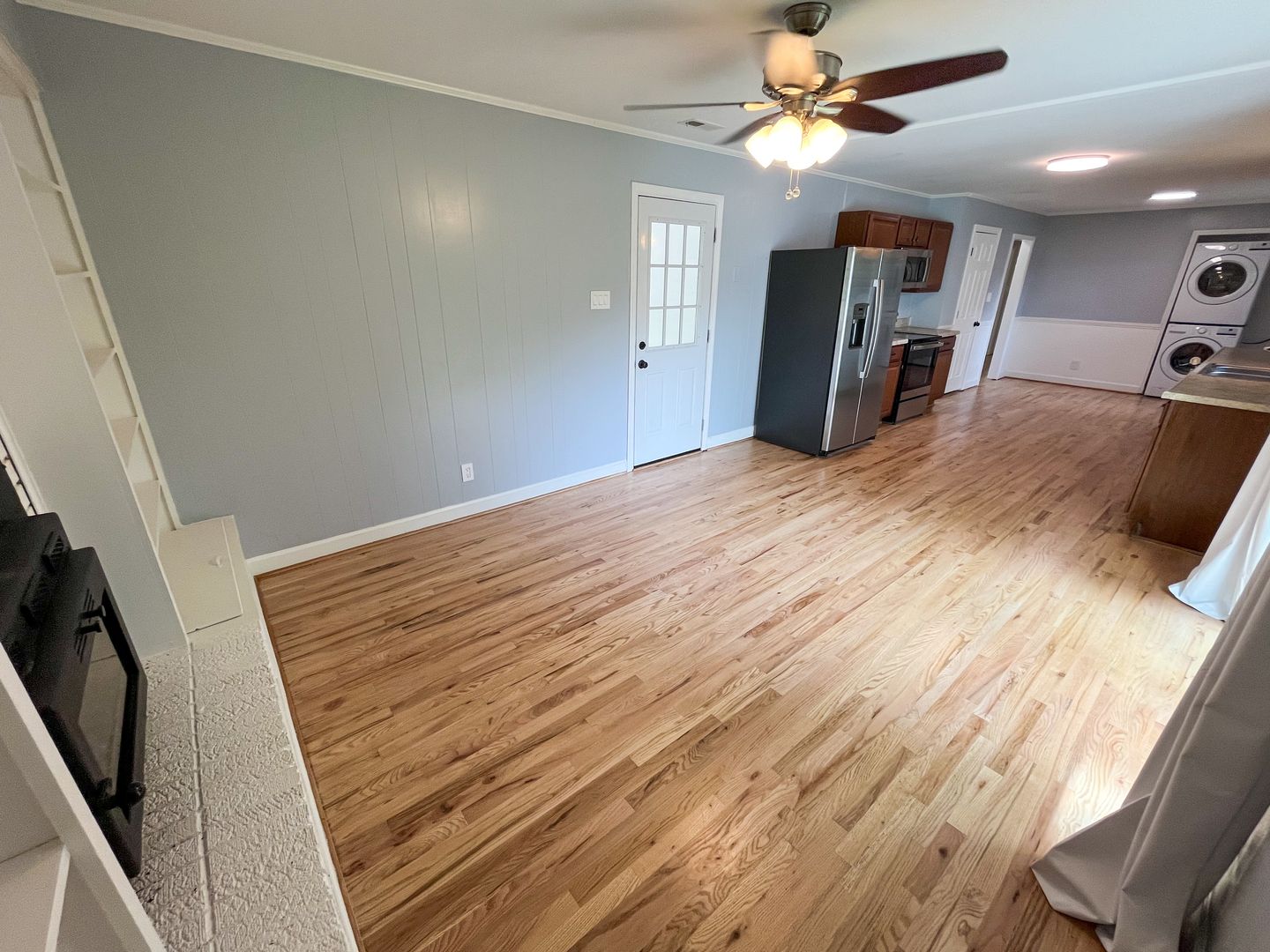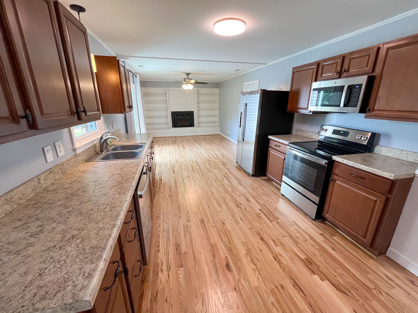 This house features a brand new kitchen with stainless steel appliances, gorgeous hardwood floors, and a wood burning fireplace for cozy nights. The master bedroom ensuite provides privacy and convenience. The huge fenced-in backyard offers plenty of space for outdoor activities. With a 1-car carport, driveway parking, and a storage shed, this home has everything you need. Enjoy the nice sized front porch and ceiling fans for added comfort. Don't miss out on this opportunity to make this house your home!